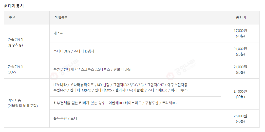 정비 항목별 공임비 확인 방법