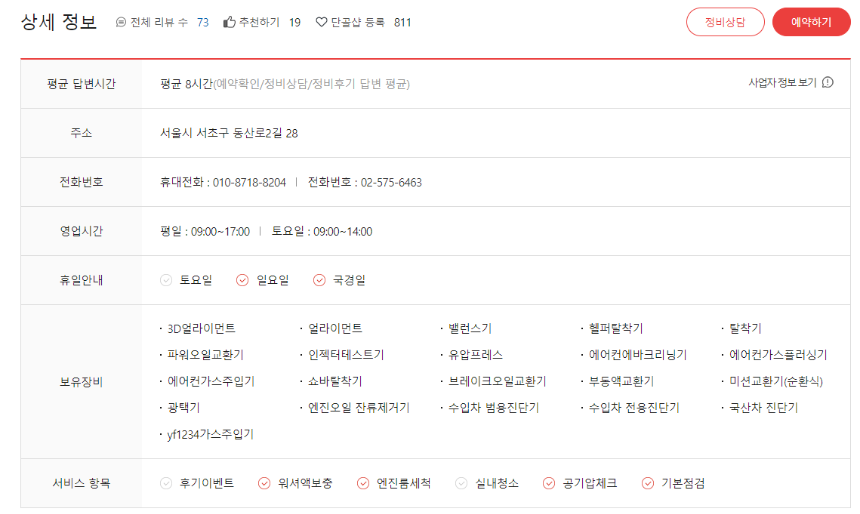 공임나라 홈페이지에서는 전국의 다양한 지점을 확인할 수 있습니다. 각 지점의 평점과 예약 가능 여부를 확인하여 자신에게 맞는 지점을 선택할 수 있으며, 공임비는 대부분 동일하지만, 일부 지점에서는 차이가 있을 수 있으니 예약 전에 반드시 확인해야 합니다. 예약이 확정되면 카카오톡으로 알림이 오니 예약 상태를 쉽게 확인할 수 있습니다.