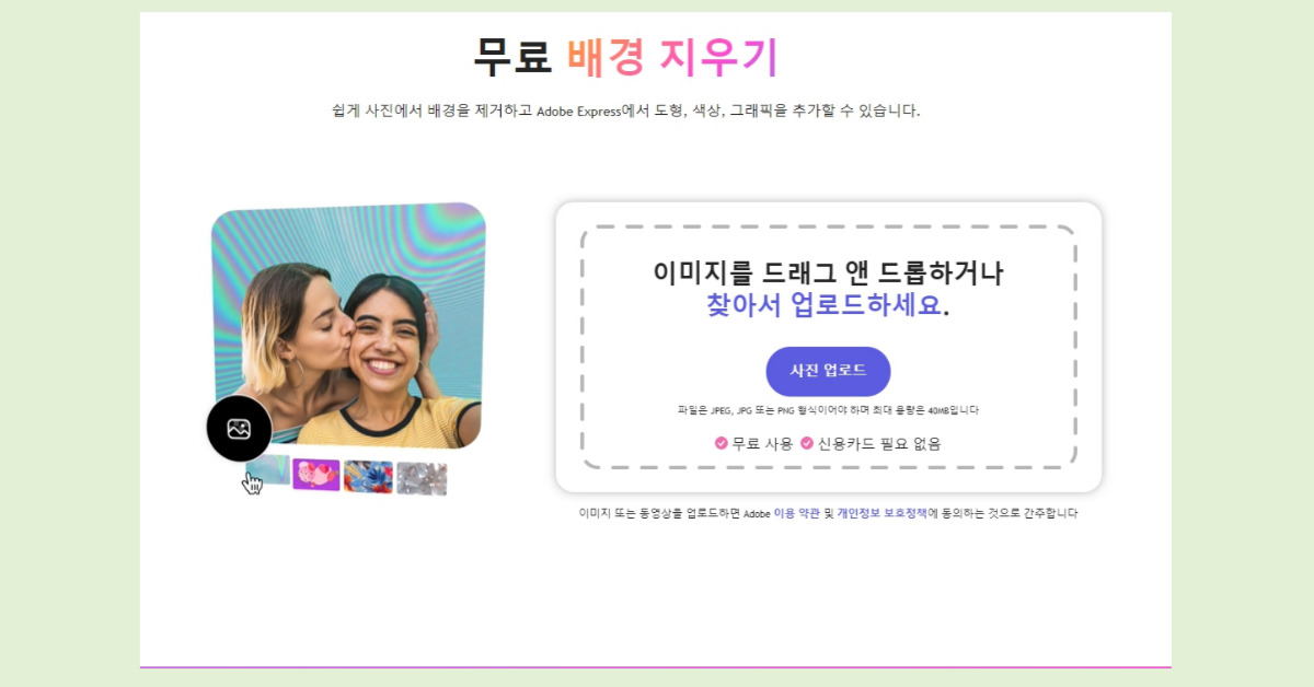 다음으로 알아볼 누끼따기 사이트는 Adobe Express입니다. Adobe Express는 Adobe의 강력한 이미지 처리 기술을 바탕으로 고화질의 이미지를 제공합니다. 이는 특히 인쇄 매체나 고해상도를 요구하는 프로젝트에 적합합니다. 하지만, 이 누끼따기 사이트의 처리 속도는 remove.bg보다 느리고, 사용자 인터페이스가 다소 복잡할 수 있습니다. 이는 초보 사용자에게는 불편을 줄 수 있습니다.