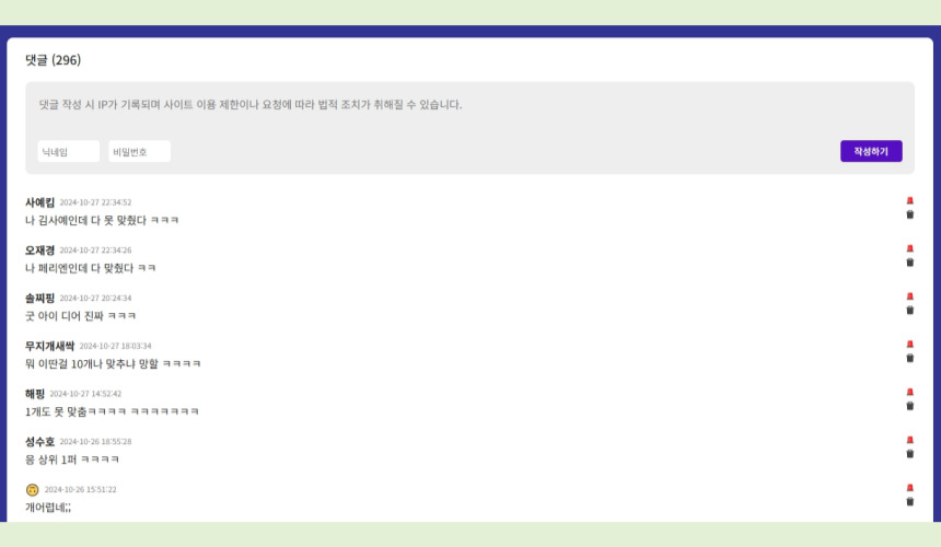 플랫폼 내에 댓글 기능이 존재하지만, 비속어가 포함된 댓글이 다수 존재해 불쾌감을 유발할 수 있습니다. 신고 기능이 마련되어 있지만 모든 비속어가 관리되지는 않는 점이 문제로 지적됩니다.