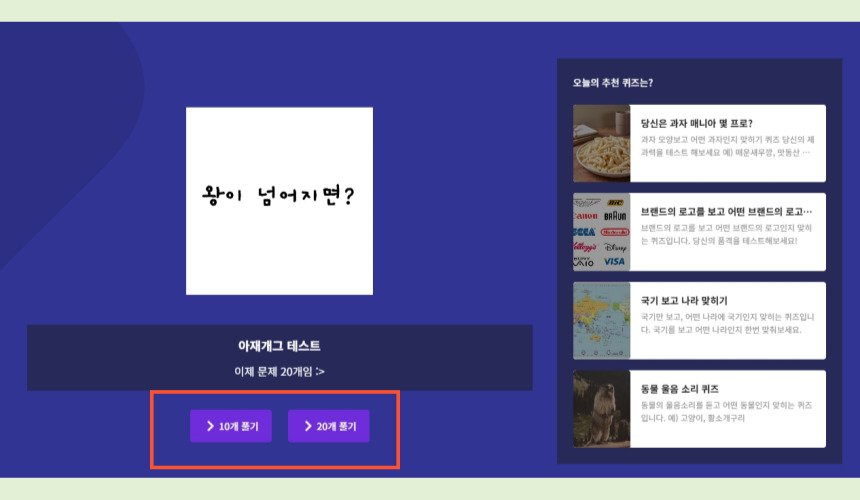 이외에도 특정 분야에 대한 퀴즈가 계속 추가되어, 관심사에 맞춰 다양한 퀴즈를 시도할 수 있는 장점이 있습니다.