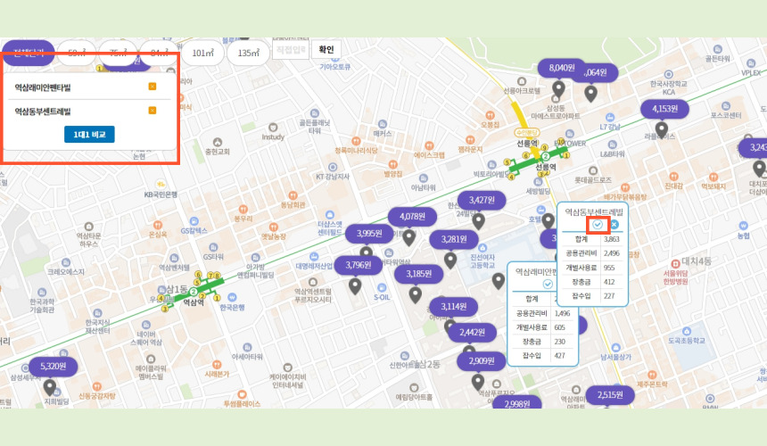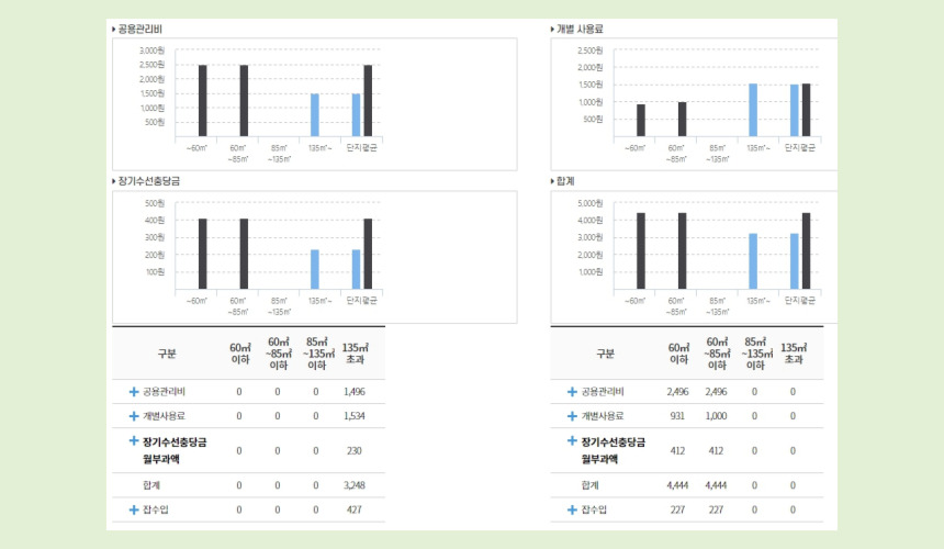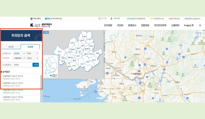 - 관리비 확인: 아파트를 선택하면 해당 단지의 월별 관리비를 확인할 수 있으며, 전기, 수도, 난방비 등 세부 항목별 관리비도 조회 가능합니다.