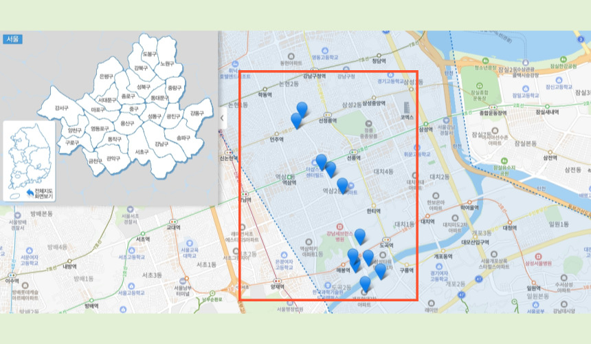 - 아파트 검색: 조회하고 싶은 아파트의 이름이나 주소를 입력합니다. 만약 정확한 이름을 모를 경우, 지도 검색 기능을 통해 아파트를 찾을 수 있습니다.