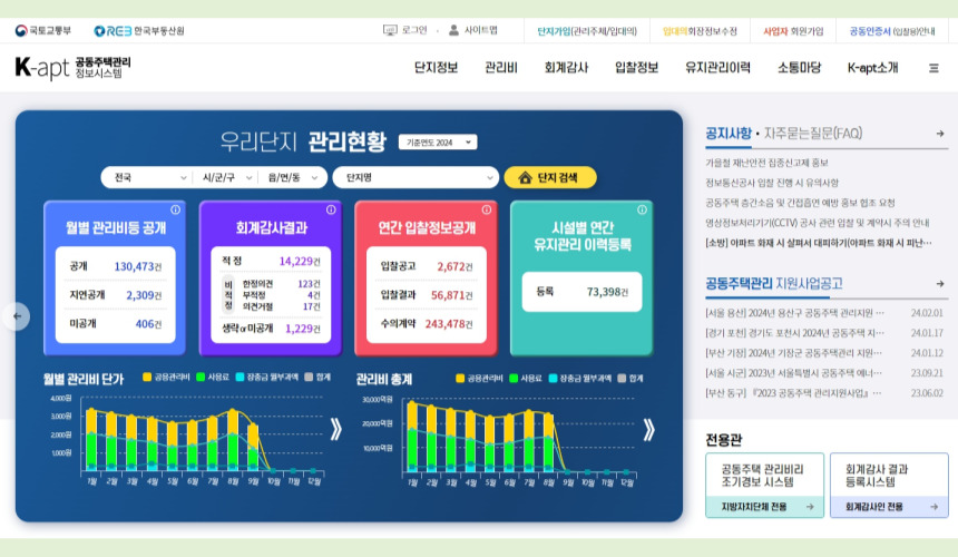 - K-APT 사이트 접속: 먼저, 공동주택 관리정보 시스템(K-APT)에 접속합니다.