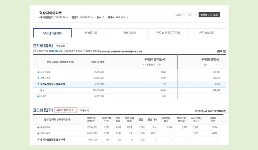 하지만 조회된 관리비는 평균적인 수치임을 염두에 두고, 보다 정확한 금액이 필요하다면 해당 아파트의 관리사무소에 직접 문의하는 것이 좋습니다.