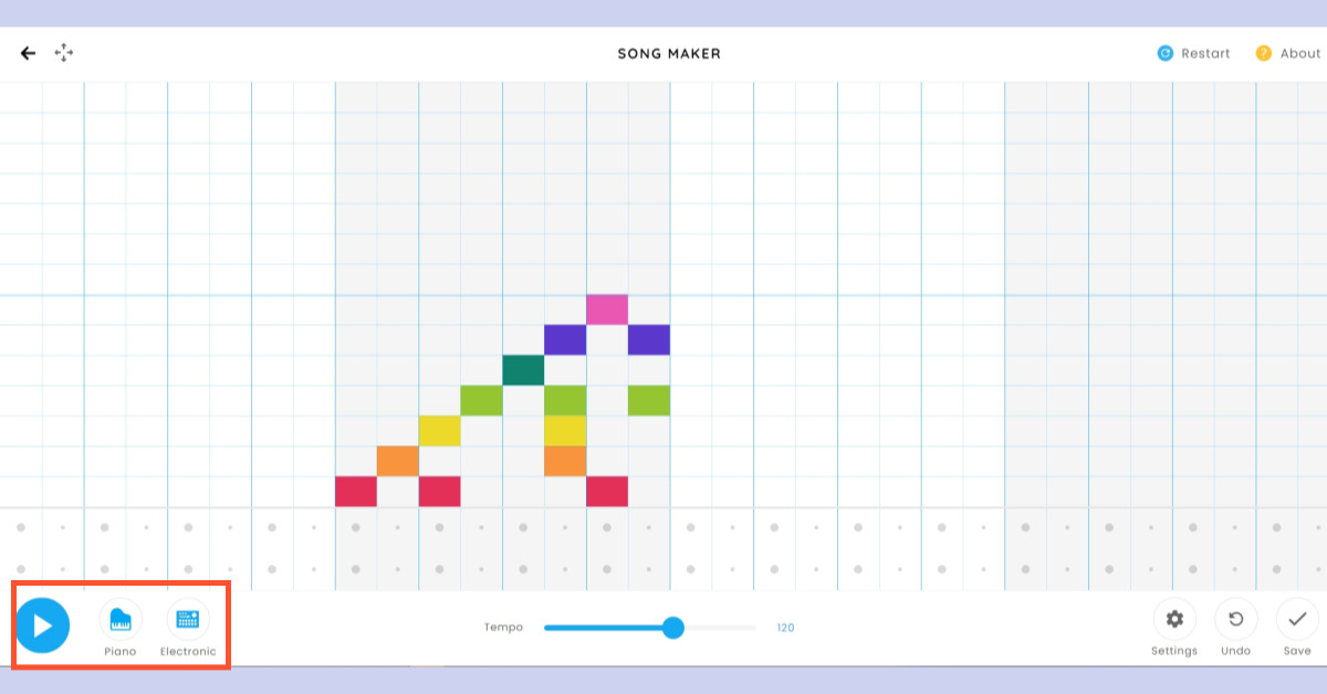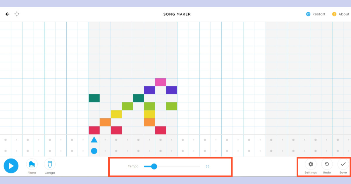 크롬 뮤직랩 송메이커는 사용자가 쉽게 노래를 만들 수 있게 도와주는 도구입니다. 오선지 대신 색색의 도형을 사용해 음을 넣으며, 클릭이나 터치로 비트를 추가할 수 있습니다. 가장 아랫줄이 '도'가 되며, 음계를 쉽게 이해할 수 있도록 도와줍니다. 하단부의 푸른색 삼각형과 동그라미를 통해 비트를 추가할 수 있으며, 다양한 악기로 소리를 변경할 수 있습니다. 또한, 완성된 음악은 저장하거나 다른 사람들과 공유할 수 있습니다.