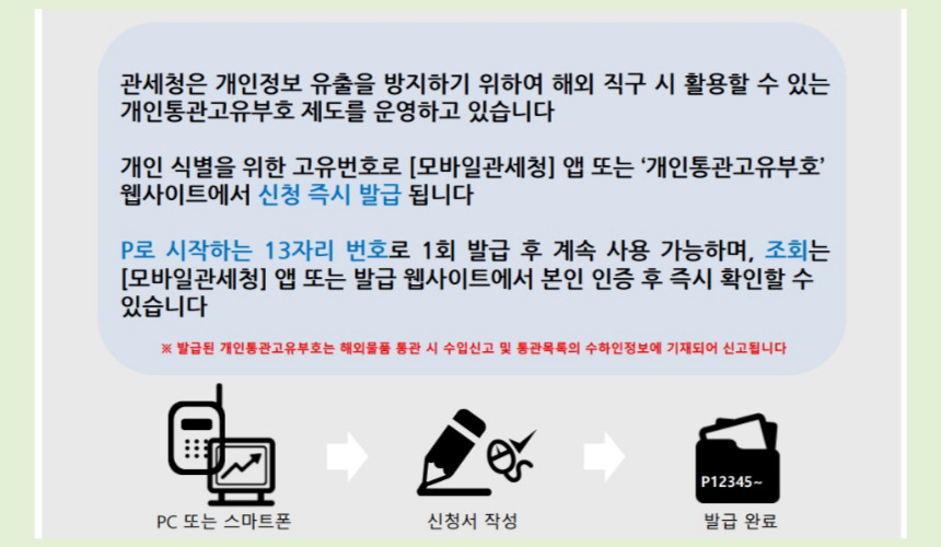 • 정확한 정보 입력: 통관번호를 발급받을 때 신분증과 동일한 정보를 입력해야 합니다. 잘못된 정보는 발급 오류를 유발합니다.