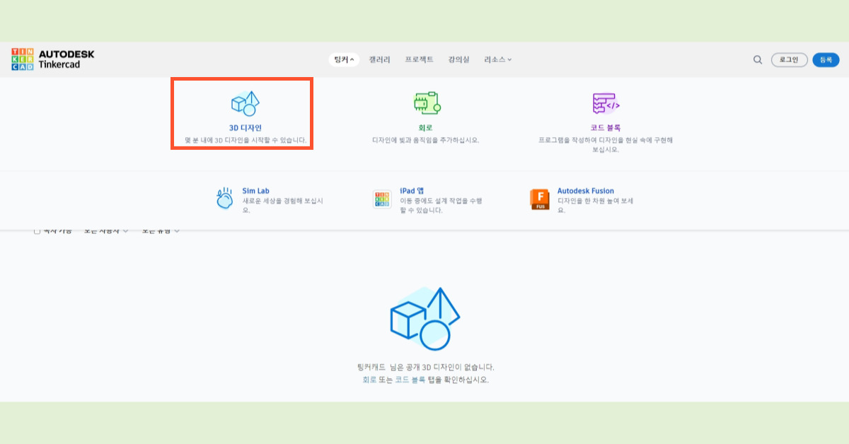 먼저, 아래 링크를 통해 팅커캐드의 공식 홈페이지로 이동하세요.