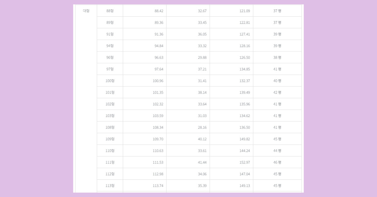 - 공급면적: 전용면적에 더해 공용 공간을 포함한 면적입니다. 공용 공간에는 엘리베이터, 계단, 복도 등이 포함됩니다. 따라서 공급면적은 항상 전용면적보다 크게 나옵니다.
