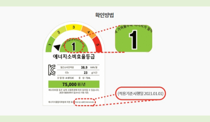 구매 영수증과 에너지 소비효율 등급 라벨을 준비하세요.