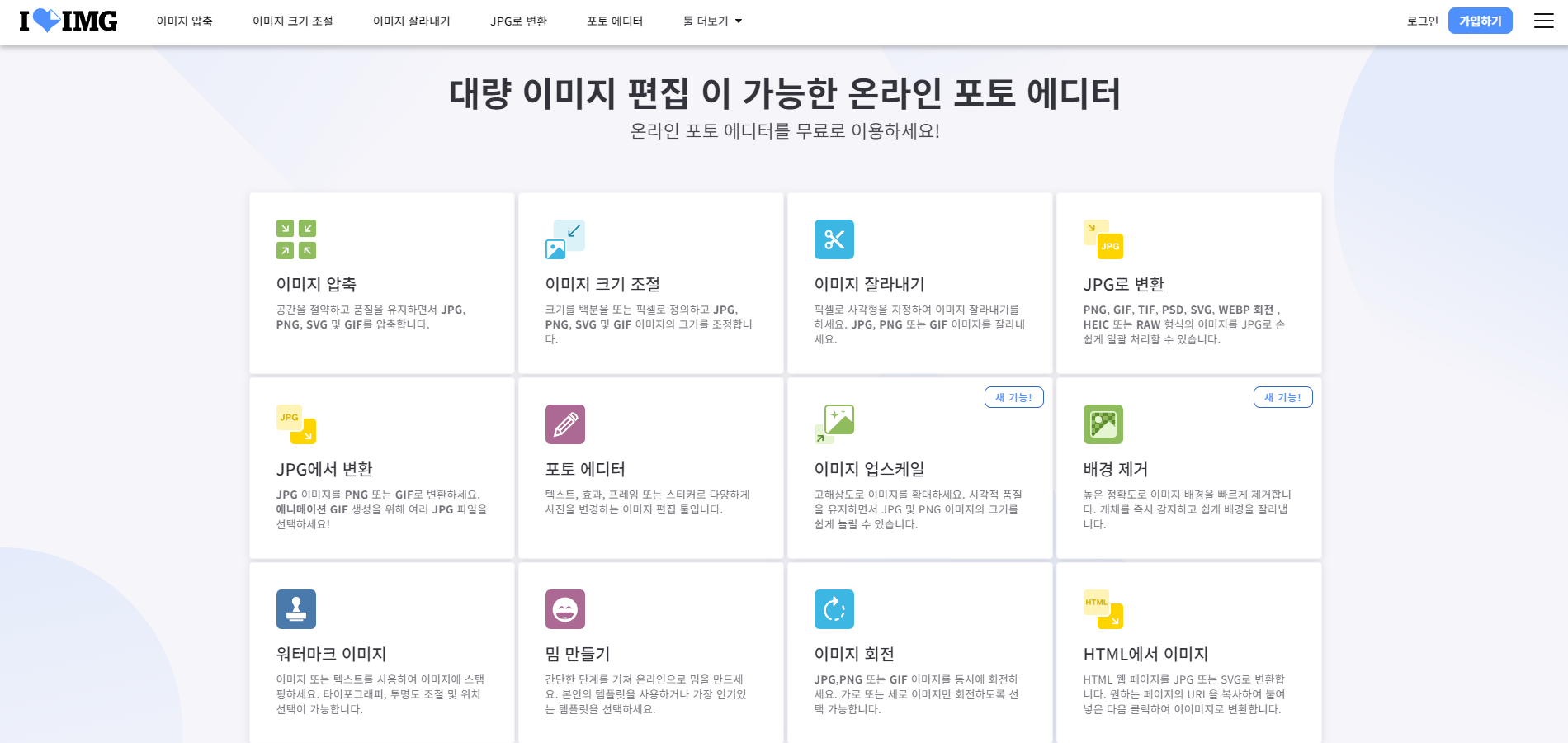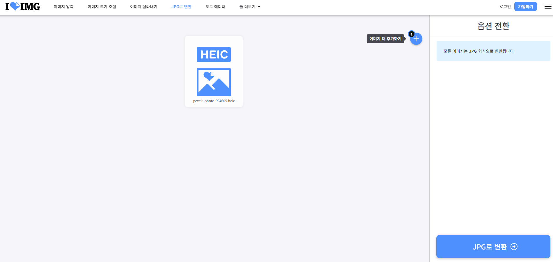 이후 메인 화면에서 JPG로 변환 아이콘을 선택합니다. 오늘 변환하려고 하는 HEIC 파일 외에도 다양한 이미지를 변환할 수 있습니다.