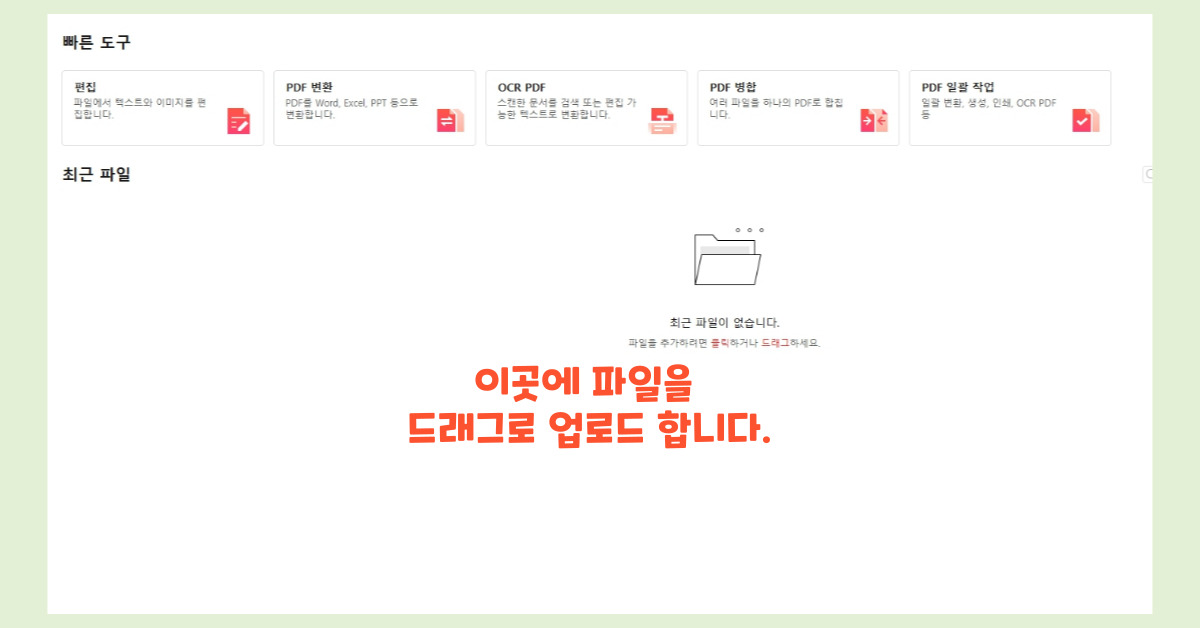 변환할 PDF 파일을 드래그 앤 드롭 또는 일반적인 방법으로 업로드합니다.