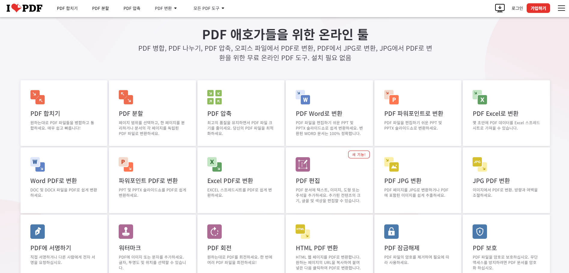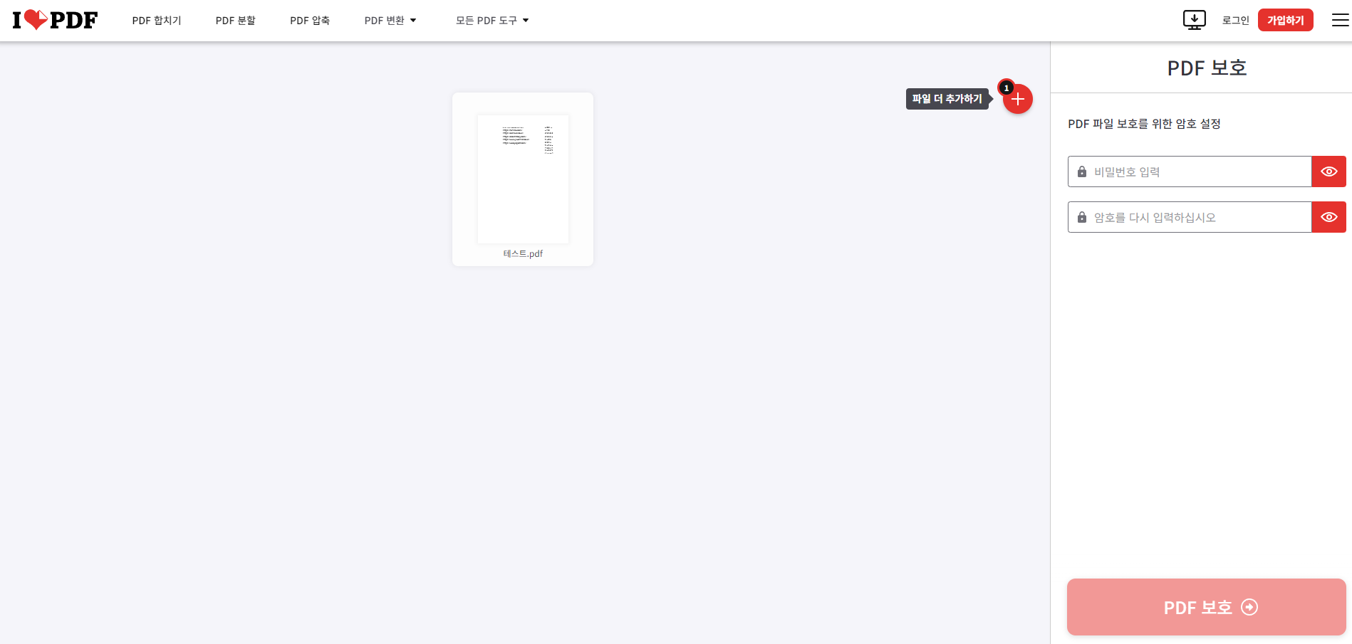 이번에는 반대로 비밀번호를 설정하는 방법에 대해서 알아보겠습니다. 저는 위에 설명드린 ILOVEPDF를 이용해 보겠습니다.