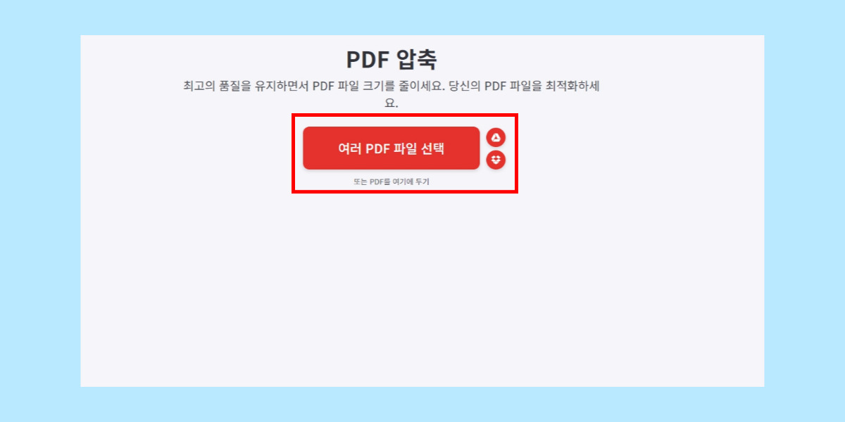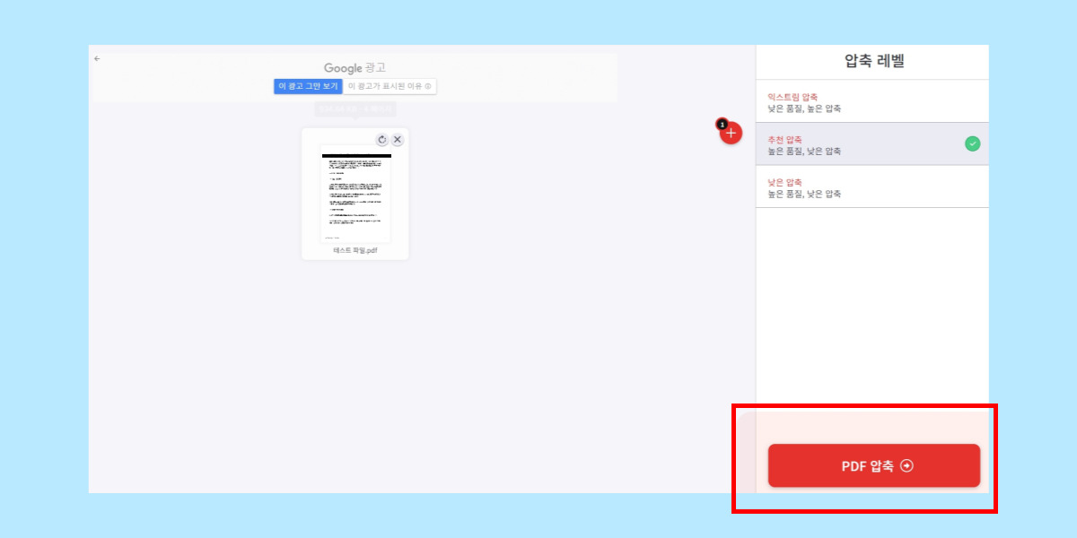 PDF 압축: 'PDF 압축' 버튼을 클릭하여 파일의 용량을 줄입니다.