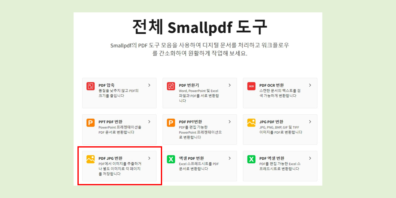 ILOVEPDF를 사용한 PDF JPG로 변환