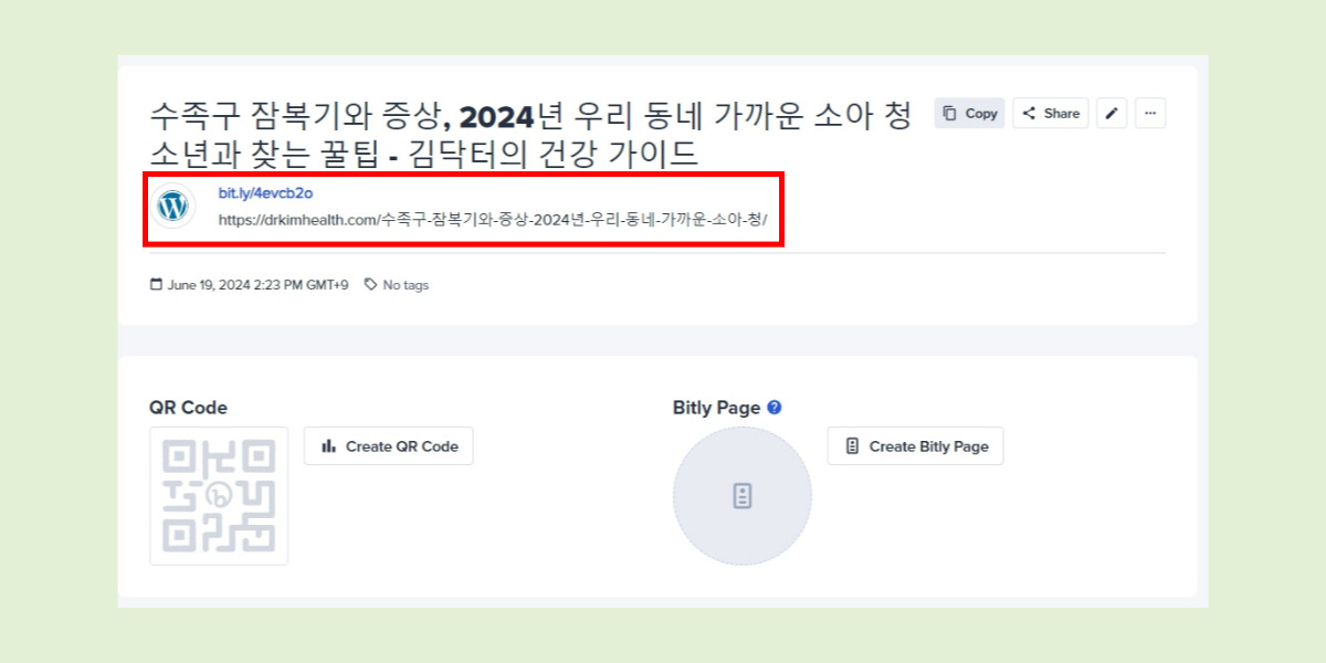 생성된 단축 URL은 bit.ly로 시작합니다. 이 단축 URL을 클릭하여 정상적으로 변경되었는지 확인하는 것이 좋습니다. 만약 이미 단축한 URL을 다시 시도하면, 경고 메시지와 함께 기존 링크로 이동할 수 있습니다. 아래 이미지를 보신후 진행 하시면 더욱 쉽게 하실 수 있습니다.