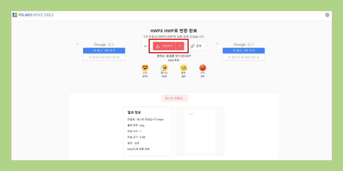 파일 다운로드: 변환된 hwp 파일을 다운로드합니다.