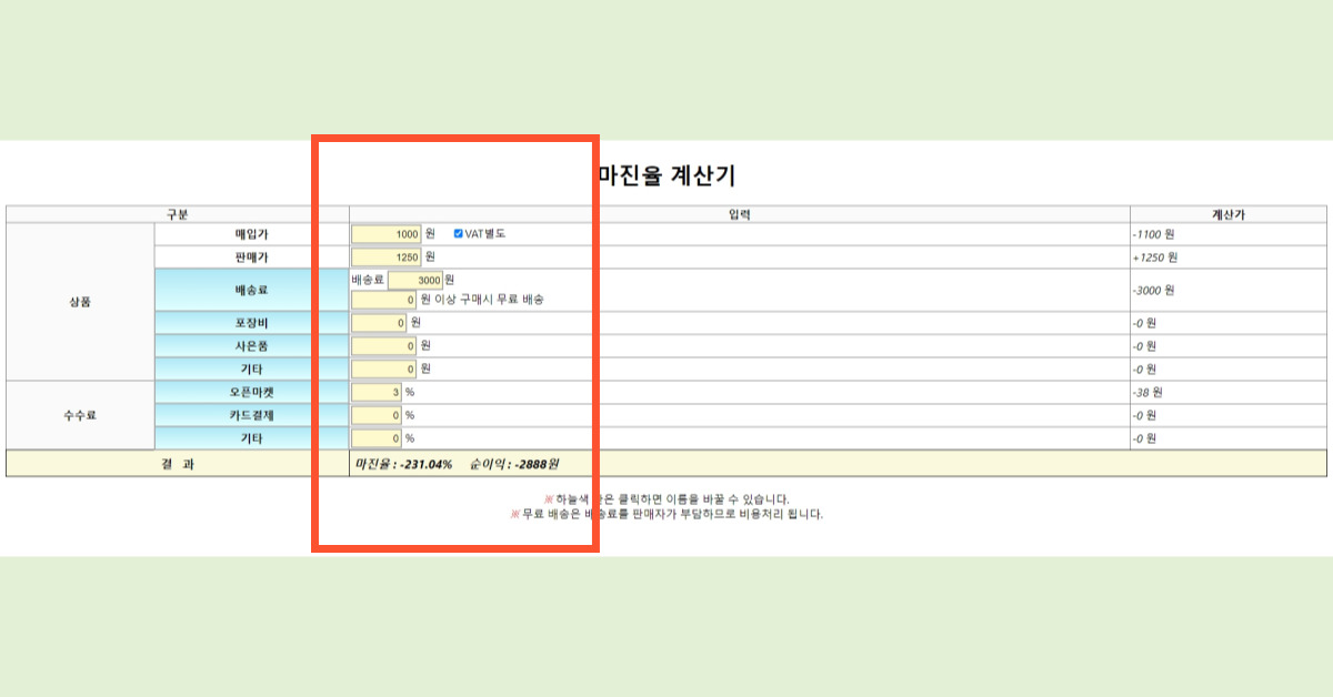 마진율 계산 방법에서 가장 간과하기 쉬운 부분은 택배비와 부가세입니다. 원가 1,000원인 제품을 1,250원에 판매하고, 택배비와 세금을 고려하면 마진율 계산 방법은 완전히 달라집니다. 예를 들어, 부가세 별도, 택배비 3,000원, 수수료 3%를 적용하면 실제 마진율은 -231.04%, 순이익은 -2,888원이 됩니다.
