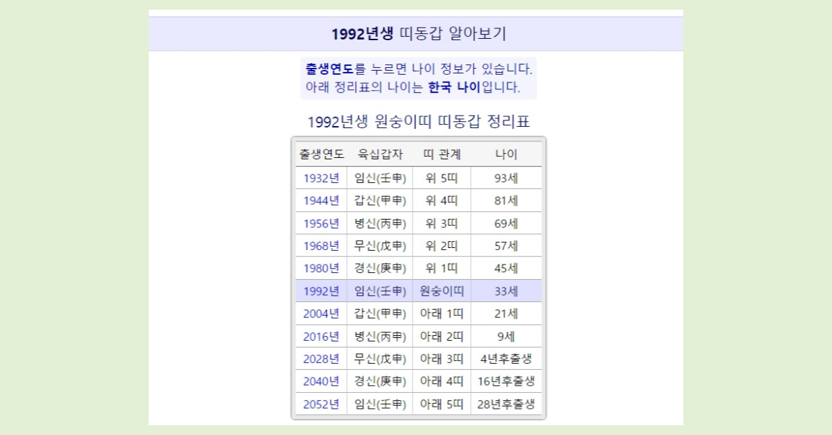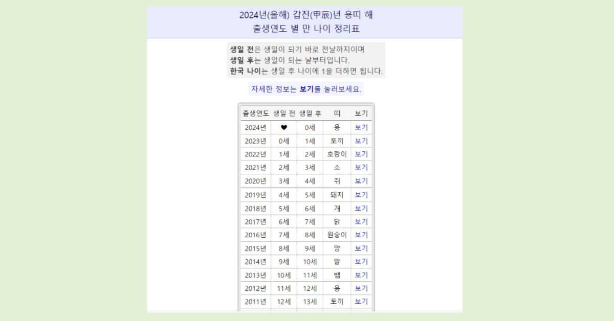 - 올해 생일이 지났다면: 동일한 1992년생이 생일이 지난 경우, "2024 - 1992 = 32"로 만나이 32세가 됩니다.