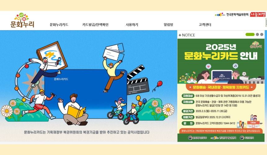 문화누리카드는 2006년에 연간 5만 원으로 시작된 문화바우처입니다. 매년 조금씩 인상되며, 2023년에는 11만 원, 2024년에는 13만 원, 그리고 2025년에는 무려 14만 원까지 증액되었습니다.