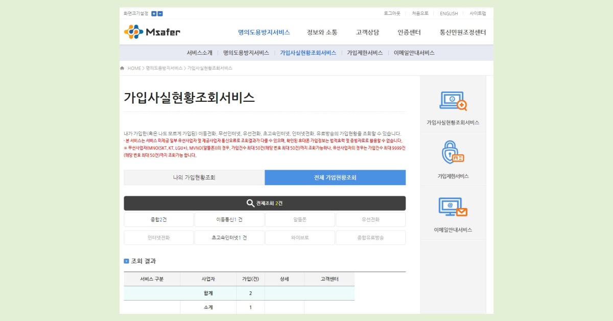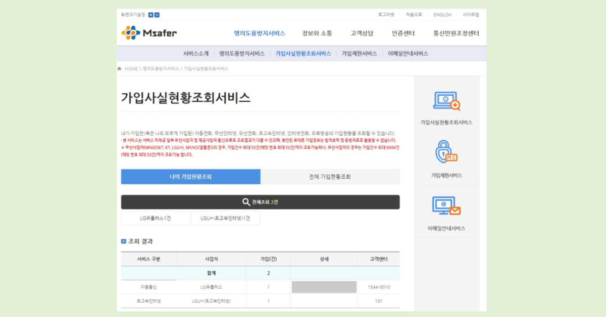 가입 내역 조회 서비스: 숨겨진 명의도용 탐지