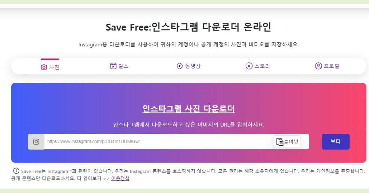 두 번째 인스타 스토리 몰래보기 사이트는 세이브 인스타입니다. 이 사이트는 매우 직관적인 인터페이스를 제공하여, 인스타그램에 올라온 콘텐츠를 쉽게 볼 수 있습니다.