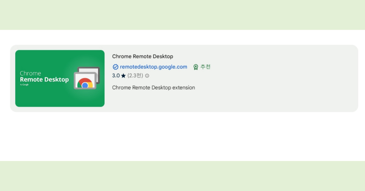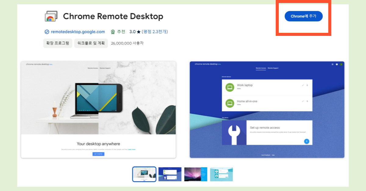 - 화면의 지시에 따라 크롬 원격 데스크톱 확장 프로그램을 설치합니다.