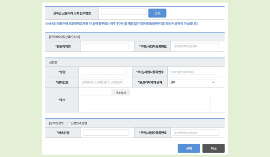 부모님의 숨겨진 자산을 확인하려면 상속 관계를 증명하는 문서가 필요합니다. 가족관계증명서, 사망진단서, 상속 포기 확인서(다른 상속인의 동의서) 가 필요 합니다. 이후 금융기관 영업점 방문 후 신청합니다. 서류가 준비되면 서민금융통합지원센터에서도 처리 가능합니다. 다만 1,000만 원 이상의 금액은 반드시 금융기관을 직접 방문해야 하니 참고하세요.