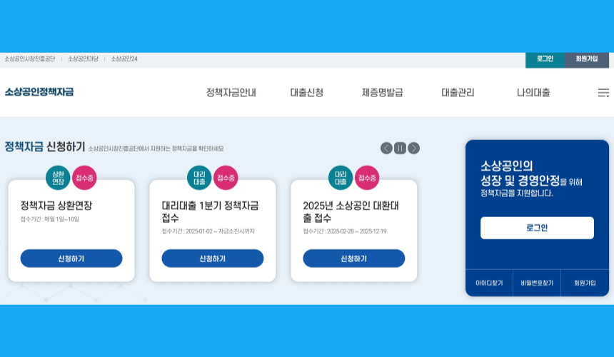 - 소상공인시장진흥공단 정책자금 사이트 접속