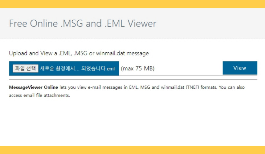 - 해당 링크를 클릭하여 EML 뷰어 사이트에 접속합니다.