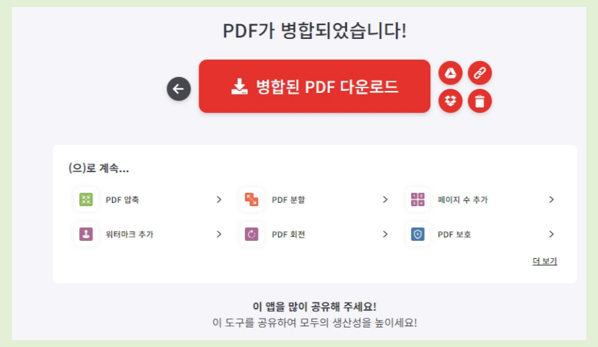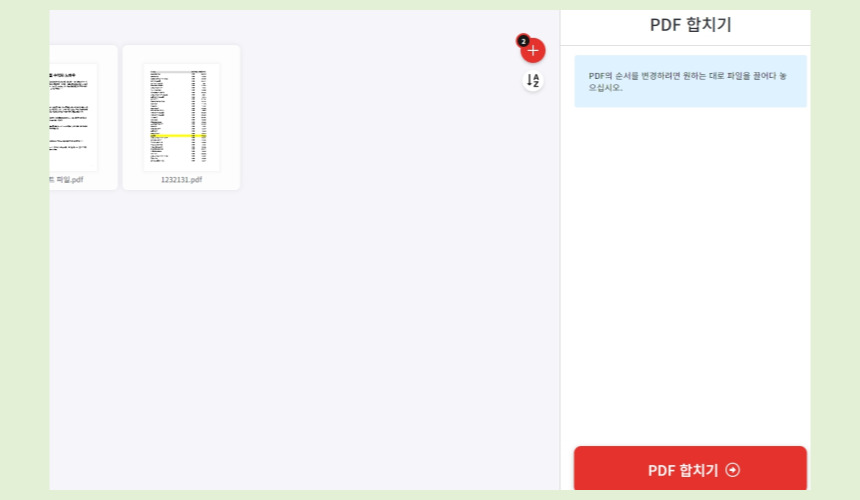 - "PDF파일 합치기" 버튼을 클릭하면 파일이 하나로 병합됩니다.