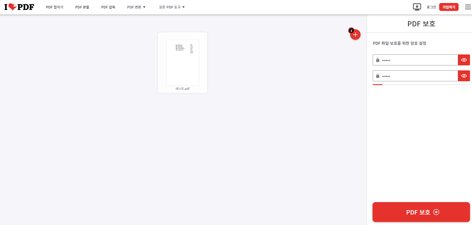 이번에는 반대로 비밀번호를 설정하는 방법에 대해서 알아보겠습니다. 저는 위에 설명드린 ILOVEPDF를 이용해 보겠습니다.
