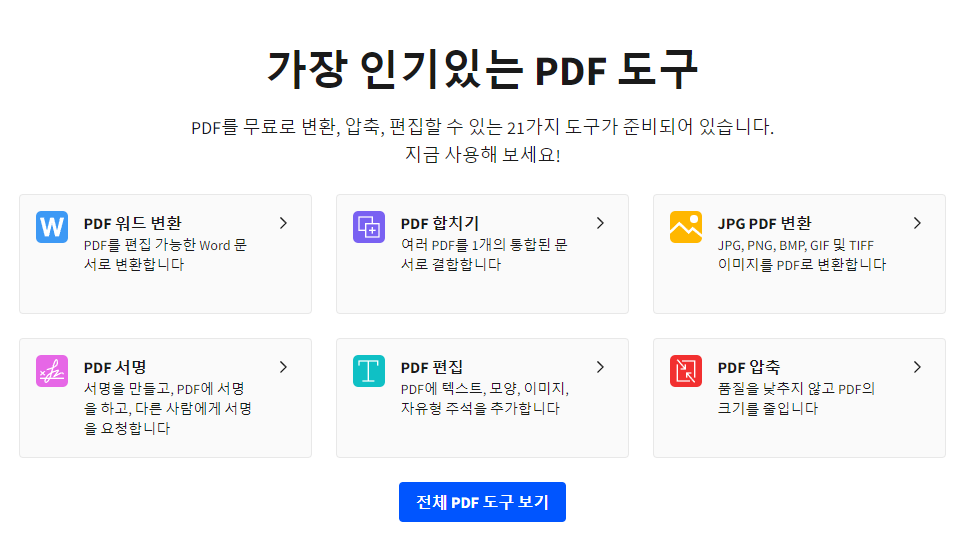 이후 전체 PDF 도구 보기를 클릭 한우 마우스 스크롤을 내려 PDF 잠금 해제 버튼을 클릭합니다.