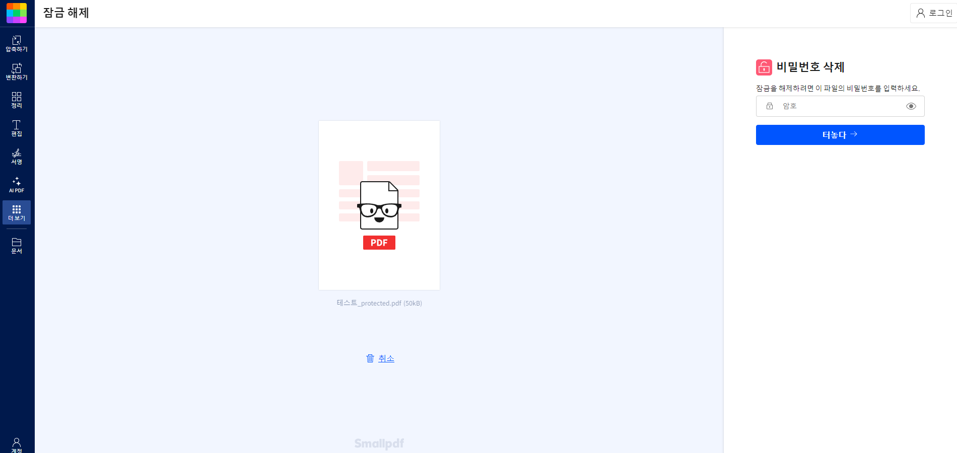 SmallPDF를 이용한 PDF 비밀번호 해제