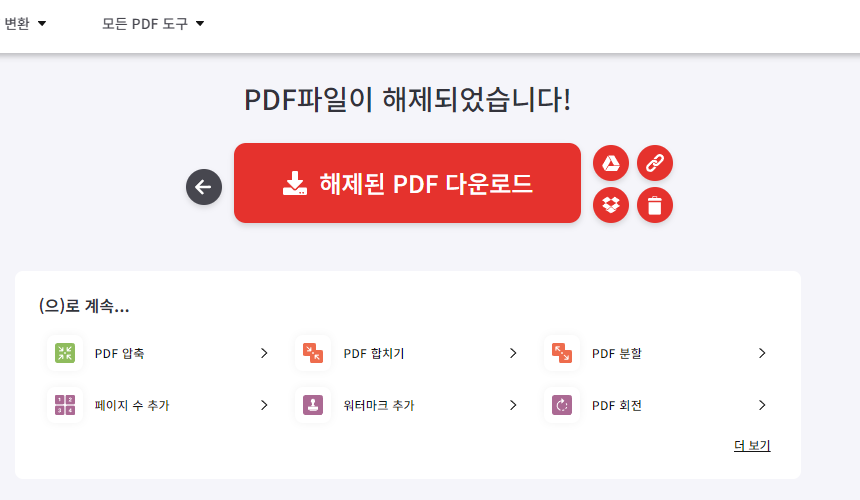 이후 화면에 보이는 PDF 잠금 해제 버튼을 클릭합니다.