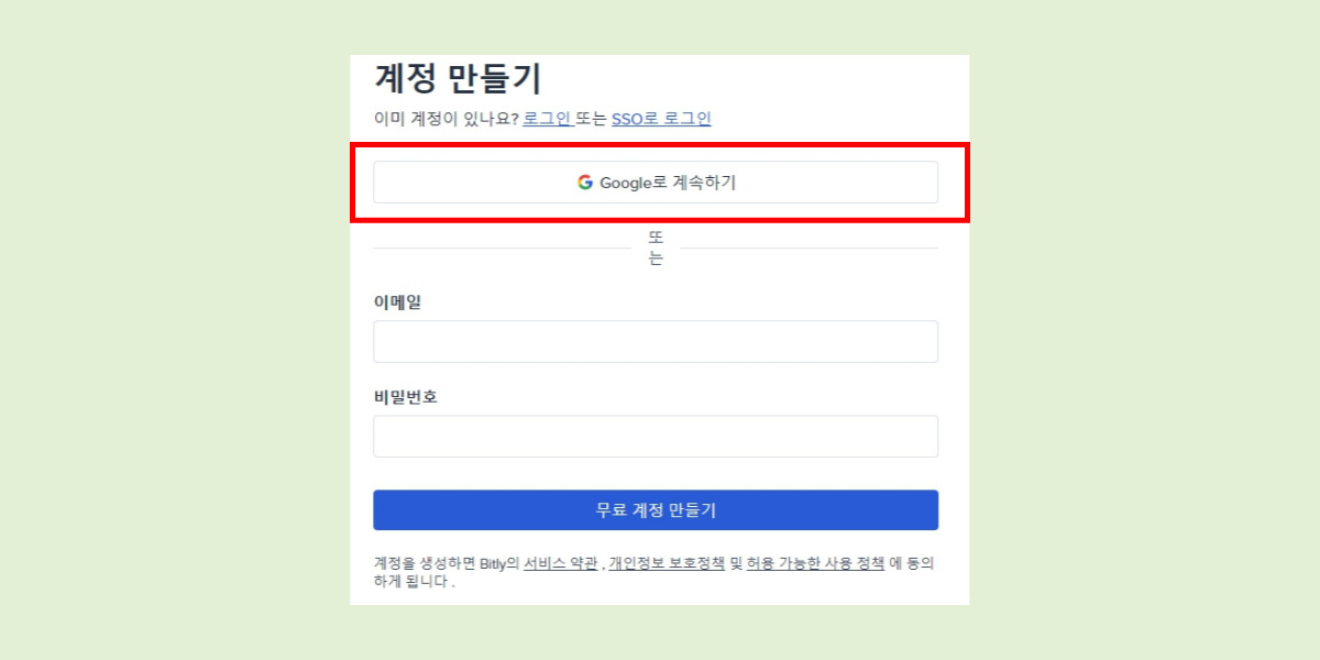 비틀리 사이트에 접속하여 "시작하기" 버튼을 클릭합니다. 계정을 생성하는데, 구글 계정으로 로그인하거나 무료 계정을 생성할 수 있습니다.