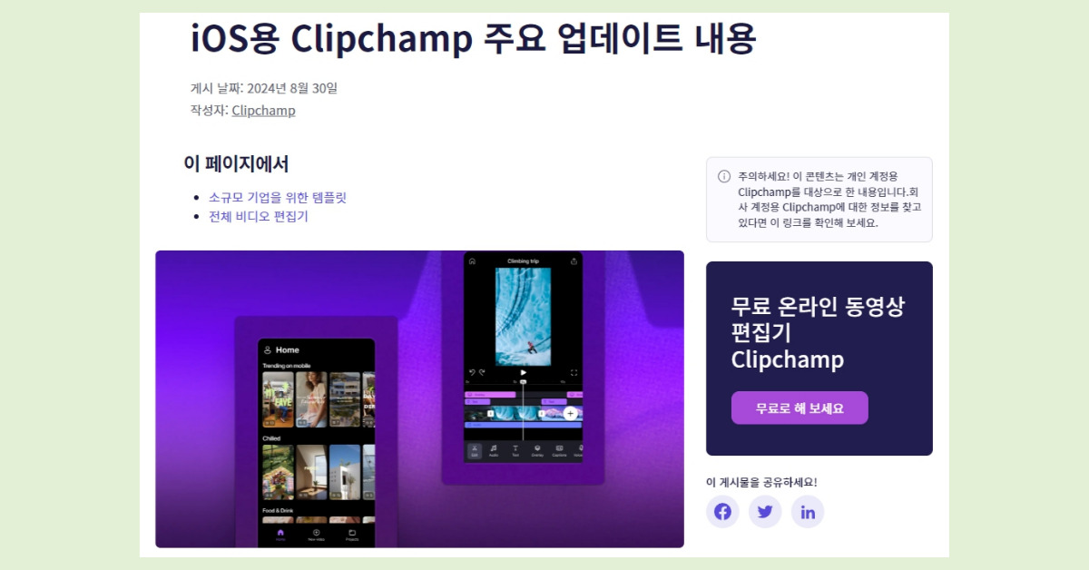 참고 : clipchamp 클립챔프는 윈도우 10, 과 11에서 최적화 되어 있으니, 이점은 참고 하실 필요가 있습니다.