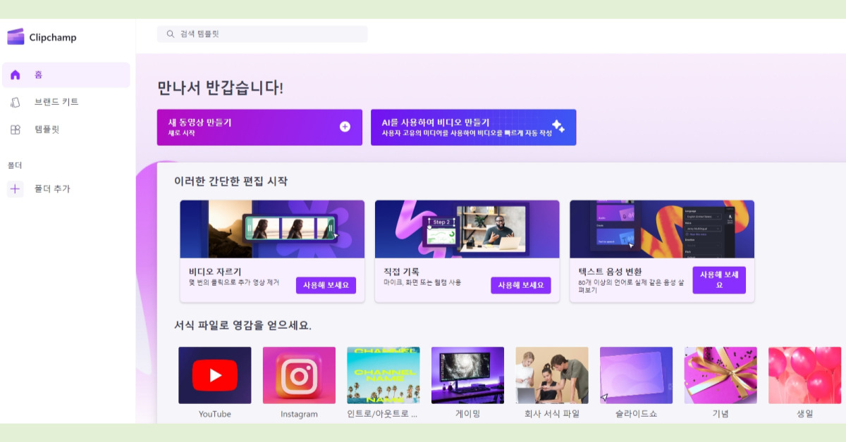 clipchamp 클립챔프는 간편안 온라인 동영상 편집 툴로, 우리가 주로 사용하는 윈도우 환경에서 최적화된 프로그램입니다. 해당 프로그램은 특별한 다운로드 없이, 브라우저에서도 쉽게 사용이 가능하며, 기본적인 편집 기능 부터 고급 편집 기능까지 고르게 사용할 수 있어, 초보자 및 전문가 모두 사용하기 좋은 편집 프로그램입니다.